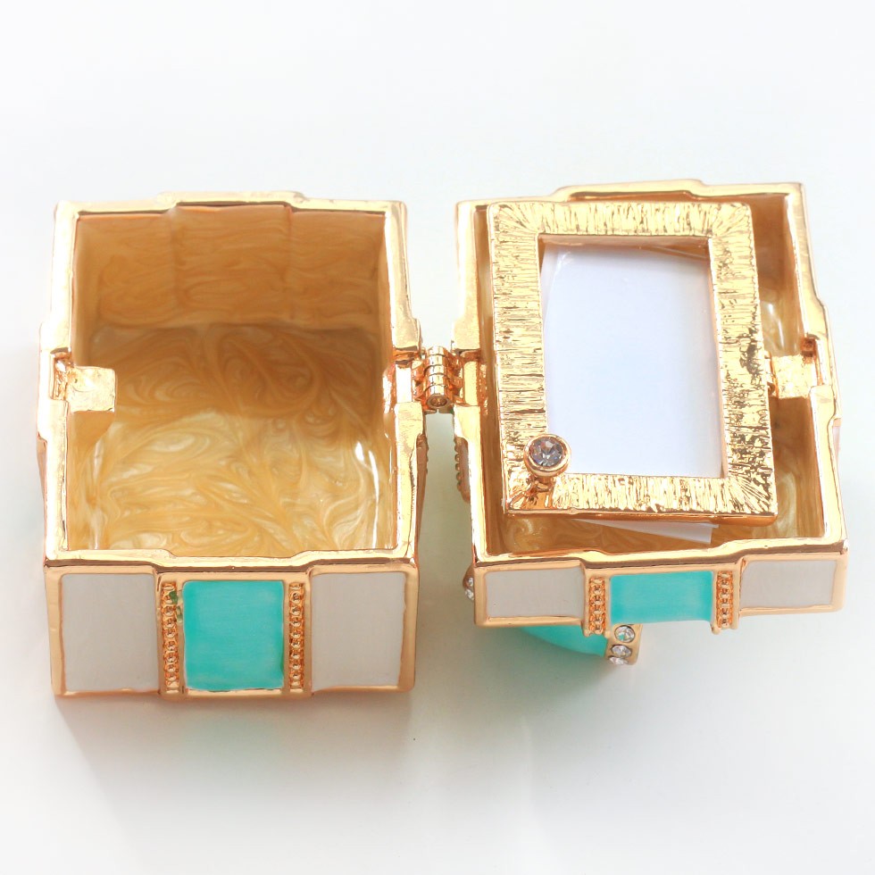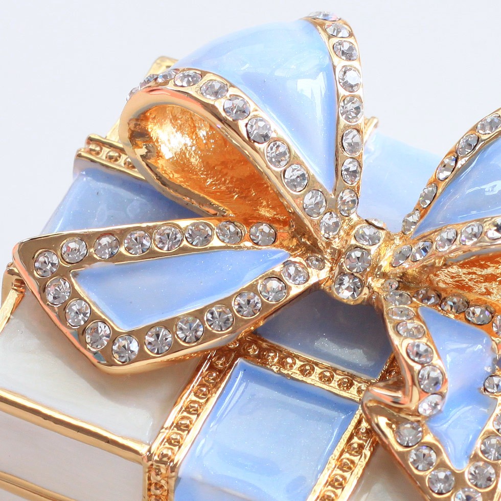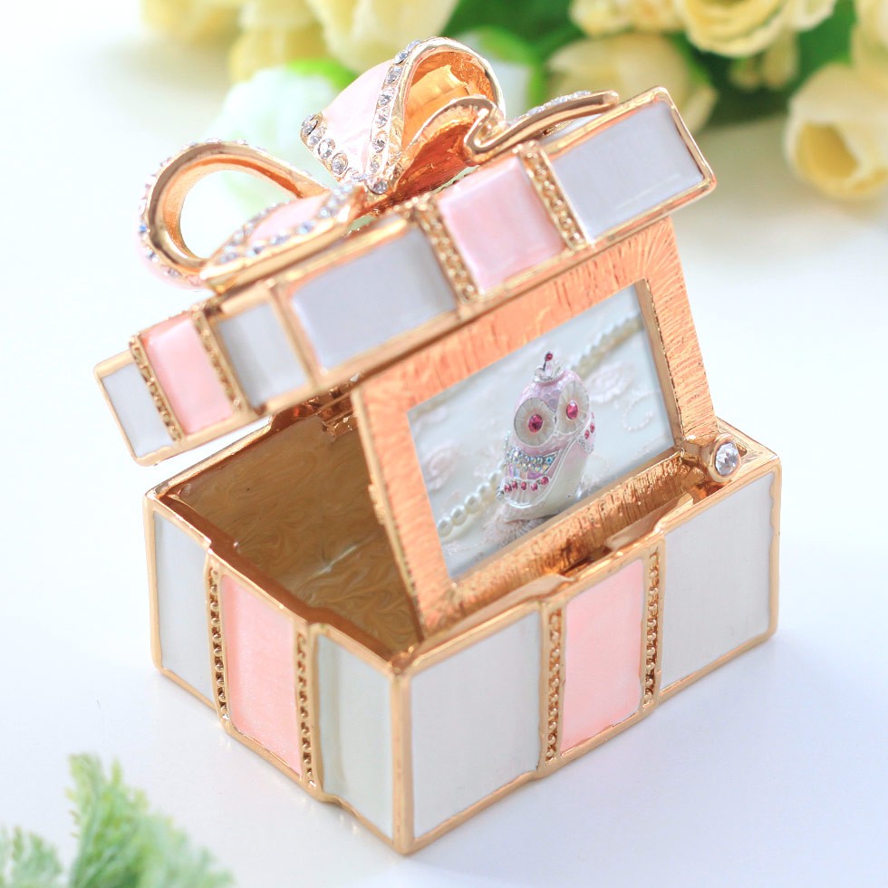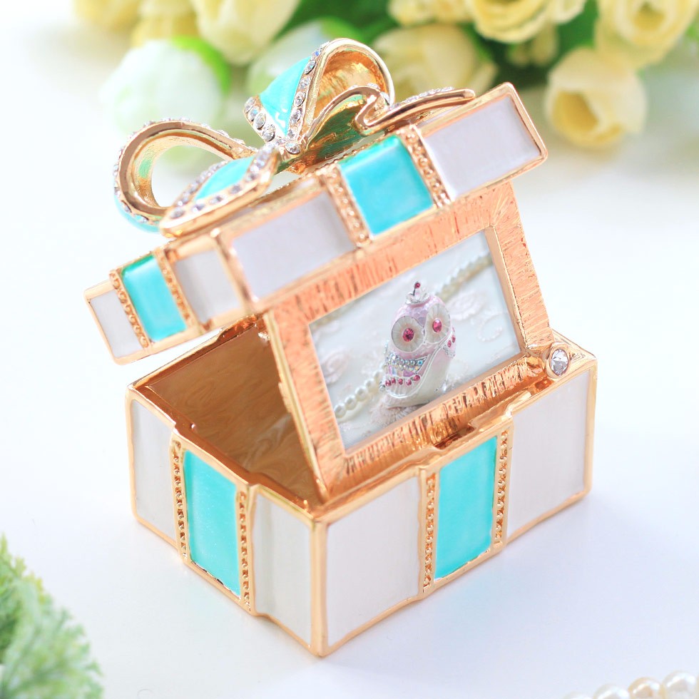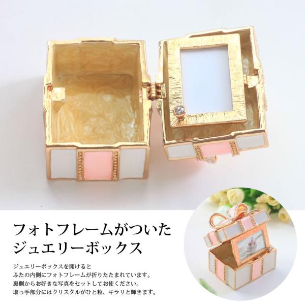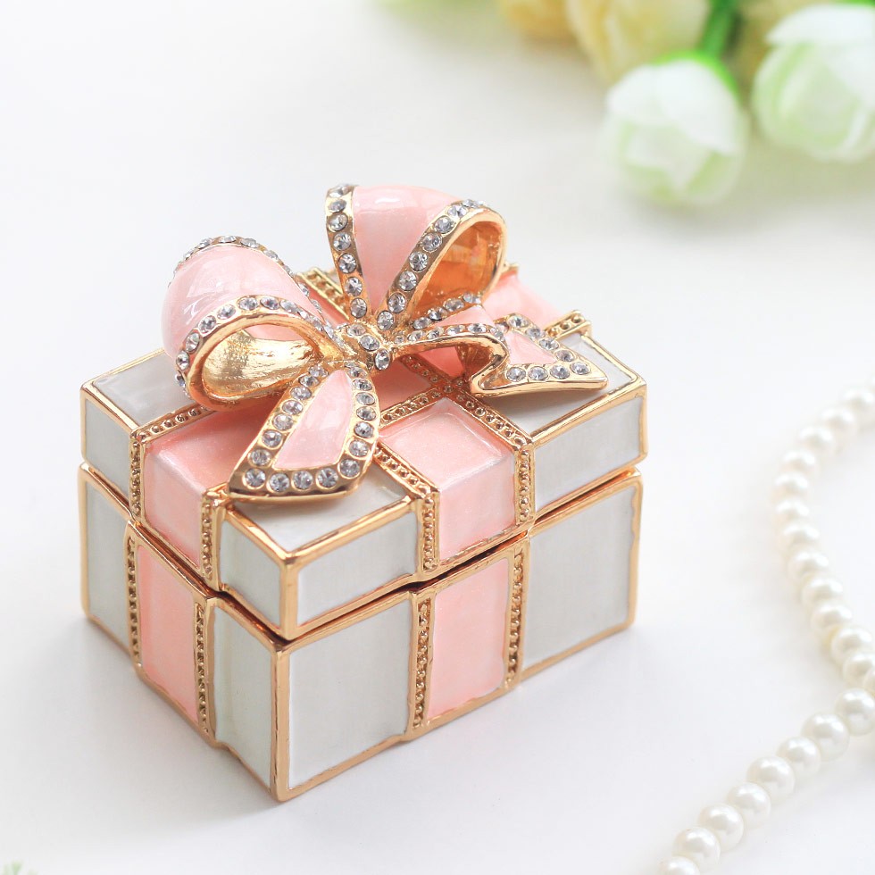 | ジュエリーボックスと言えば、指輪やピアス、ネックレスなどのアクセサリーを入れる引き出し型のケースを思い浮かべる方が多いかもしれません。 ピィアースのジュエリーボックスは、動物や花などをモチーフに作られ、合金製でずっしりとした重さがあります。また高品質のクリスタルガラスを贅沢に使用。まるでジュエリーボックスそのものが宝石のような、高級感溢れる仕上がりです。 小物入れとしても使えるように開閉口には磁石が取り付けてあり、アクセサリーなどなくしやすいアイテムの収納ができます。キラキラと美しく輝く宝石箱は、そのまま飾って楽しめるインテリア雑貨として多くの方に愛されています。 国内トップクラスのジュエリーボックスメーカーであるピィアースは、2004年ごろから本格的に宝石箱の製造を始め、現在のジュエリーボックスはなんと300種類以上。大規模展示会でもご好評いただいており、全国有名百貨店でも販売されています。 自社工場でひとつひとつ丁寧に手作りし、原型作成、研磨、加工、着色、小さなクリスタルガラスの取り付けなども全て手作業で行われるこだわりのハンドメイド品。完成後は厳しい検品の後、丁寧に梱包作業をしお客様にお届けしております。 ピィアース商品は、全国有名百貨店および全国有名宝石店チェーンにてお取り扱いいただいている高品質商品です。 ★自分へのご褒美に…コレクションして並べて飾ると、さらにかわいらしさUP! ★恋人へのプレゼント…中にアクセサリーを入れて、サプライズな贈り物として ★家族への感謝ギフト…お母さんや姉妹へ、日頃のありがとうの気持ちを込めて ★誕生日プレゼント…お友達の喜ぶ顔が見たいから、いつもと違うキラキラギフトを ★小さな女の子へ…まるでお姫様が使っているようなキラキラ宝石箱は女の子の憧れ! |