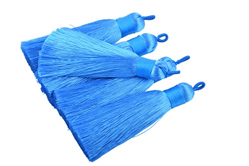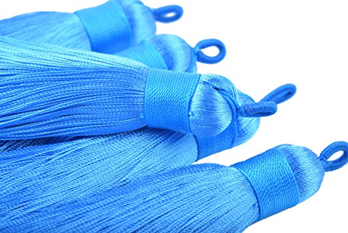 KONMAY 10pcs 3.4''(8.5cm) Handmade Imitation Silk Tassels with Hanging Loop for Jewelry Making (Peacock Blue)