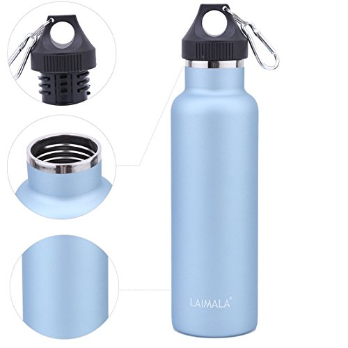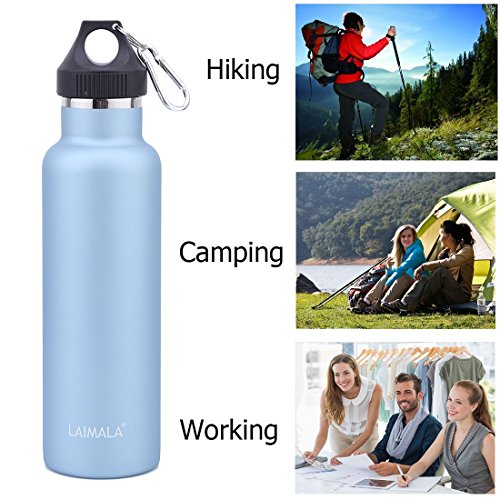LAIMALA 20 oz Insulated Stainless Steel Water Bottle, Double Wall Vacuum, Standard Mouth, Blue