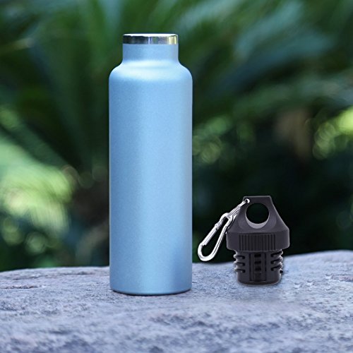 - DOUBLE-WALL VACUUM INSULATION - This sport water bottle has a nice stainless steel interior that is surrounded by the double wall vacuum insulation, which can keep the drinks cold for 24 hours, hot for 12 hours. And it holds 20 oz (600ml), it's great for taking this bottle to work and using it as a thermos for soups, tea and coffee if you like to drink all day long.