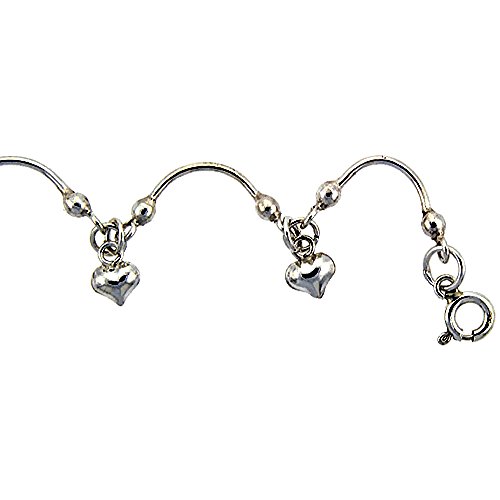 -. Title : Sterling Silver Anklet with Hearts, fits 9 - 10 inch ankles