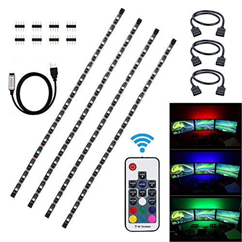 Litupliv USB LED Strip Light Kit, 4 x 1.64ft Waterproof 5050 RGB LED Light Strip with 17 Keys RF Wireless Remote Controller for HDTV Flat Screen LCD, Desktop PC Background Lighting (2M/4x1.64ft)