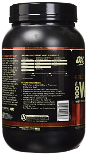 Gold Standard 100% Whey delivers 24g of whey protein, has 5.5 grams of naturally occurring BCAAs, and 4 grams of naturally occurring glutamine per serving. Gluten Free.
