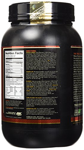 Optimum Nutrition's Gold Standard 100% Whey uses pure Whey Protein Isolates as the primary ingredient. Combined with ultra-filtered whey protein concentrate, each serving provides 24 grams of all-whey protein and 5.5 grams of naturally occurring Branched Chain Amino Acids (BCAAs) which are prized by athletes for their muscle building qualities. With more than 20 tempting flavors to choose from, ON’s Gold Standard 100% Whey gives you plenty of ways to keep workout recovery interesting. Search "ON Apparel True Strength" to see our new ON clothing line!Feature