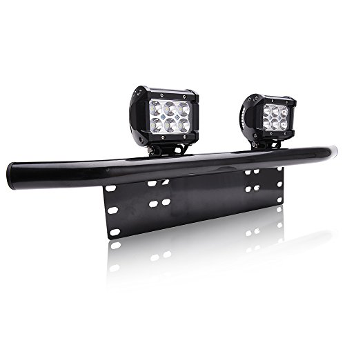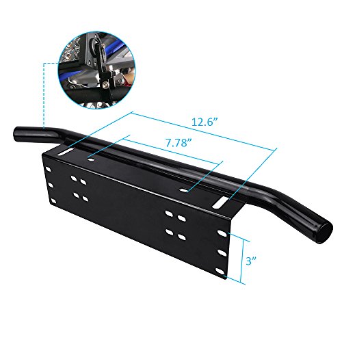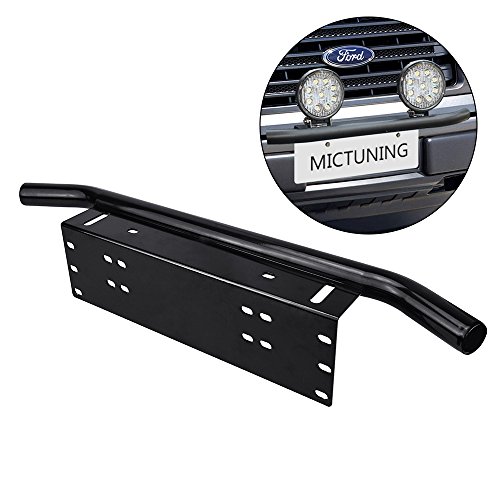 MICTUNING Universal License Plate Mounting Bracket w/ Front Bull Bar Bumper for Off Road LED Work Light Bar - Black
