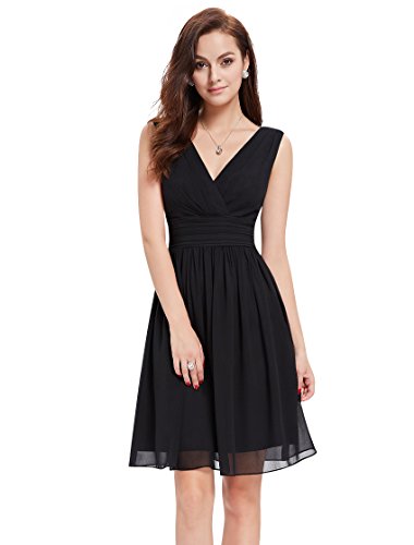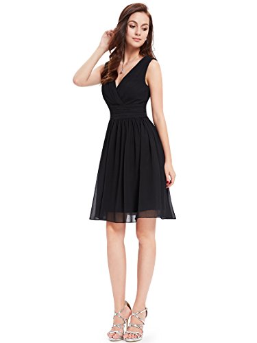 Double v-neck short party dress. Not padded. Unique ruched waist design creates an elegant silhouette. Concealed zipper up the back. Lining, no stretch. Lightweight and flowy,appropriate for many occasionsFeature