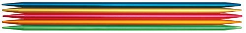 These double-pointed needles come in a funky multi-coloured set: five needles of the same size in five different colours. A unique development, with patent pending, is to have on each needle one standard tip and one fine point (for lace stitches or where precise handling is preferred). You can choose which end of the needles you would like to use!