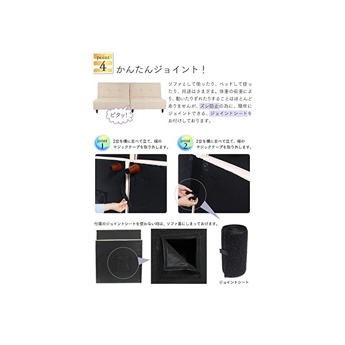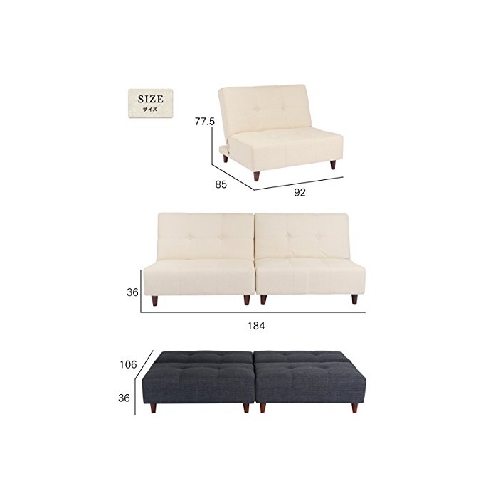 사이즈:소파 시:폭92(2대 늘어놓으면 184)×(길이)깊이85×높이77.5cm(좌면고36) 베드 시:폭92×(길이)깊이106×높이36cm