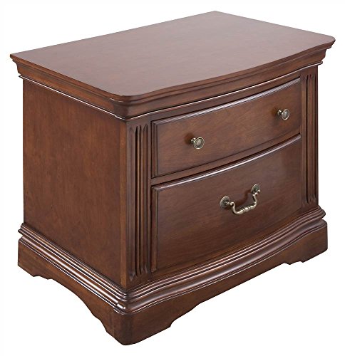 Studio : Accent Furniture Publisher : Accent Furniture Product Description A classic bracket style base gives this two-drawer nightstand a traditional look that will an enduring addition to any bedroom decor. It is made of cherry solids and veneer in a brown cherry finish and merges two distinct styles of brushed nickel tone hardware for added visual interest. Made of tropical hardwood veneers. 2-Drawer style. Fluted sides. Lacquered drawer interiors. Brushed nickel hardware pulls. Dust proofed. 18 in. L x 30 in. W x 26 in. H. 0