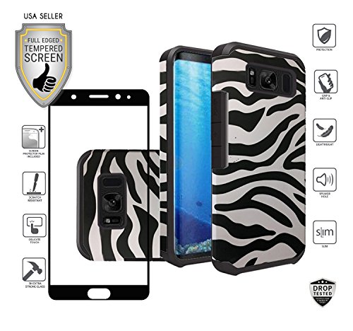 -. Title : Samsung Galaxy S8 Cover Case, with Full Edged Tempered Glass Screen Protector, Slim Hybrid Shockproof Armor Hard Plastic TPU Design Cover Case