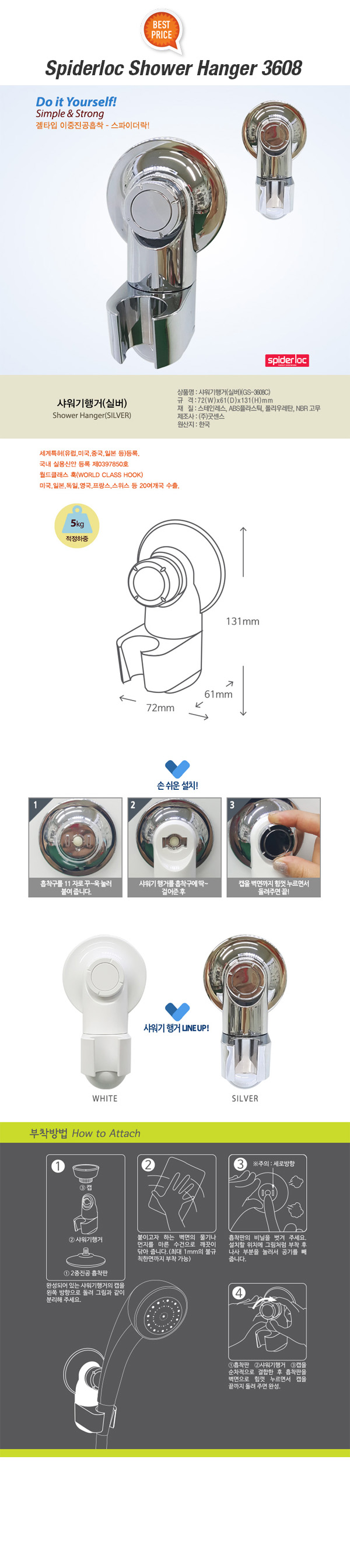 material body : ABS resin, Steel absorption plate : polyurethane, NBR origin : korea(spiderloc)