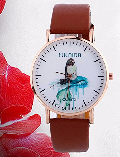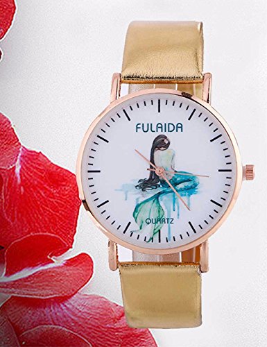 -. Title : COOKI Women Mermaid Pattern Clearance Analog Ladies Wrist Watches Girl Watches Leather Female Watches-A41