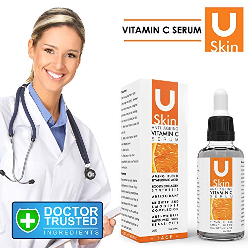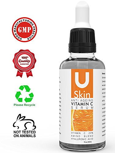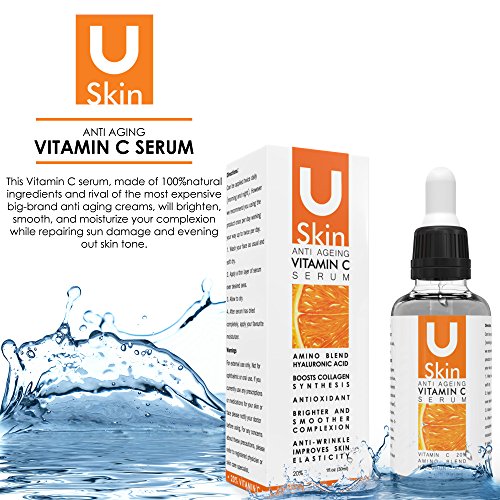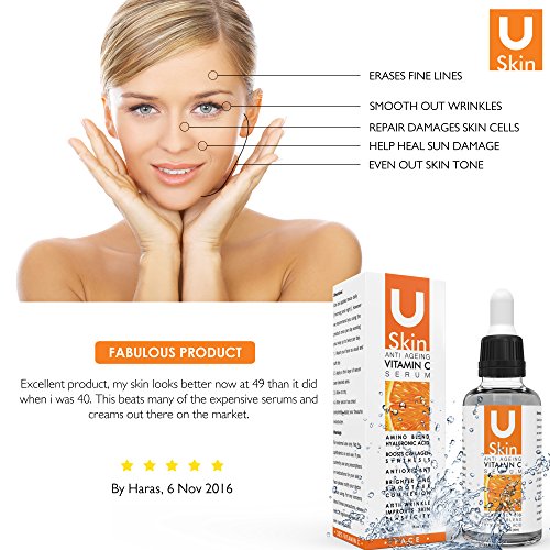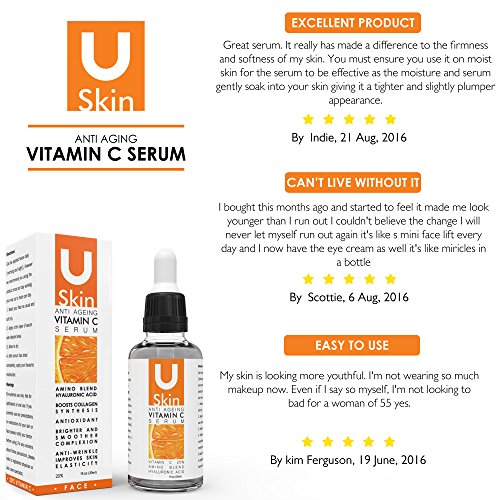 ? HIGH QUALITY ? - BRING OUT YOUR BEAUTY THE NATURAL WAY with uSkin's powerful Vitamin C Serum. This potent face serum, made of 100% natural ingredients and rival of the most expensive big-brand anti aging creams, will brighten, smooth, and moisturize your complexion while repairing sun damage and evening out skin tone. On top of that, it also naturally lifts and firms your skin, helps erase fine lines, and smoothens out wrinkles - making it the ultimate anti ageing hyaluronic acid serum!