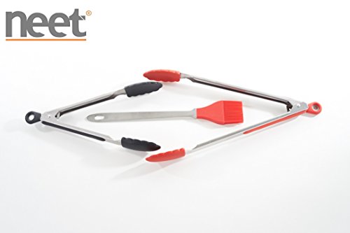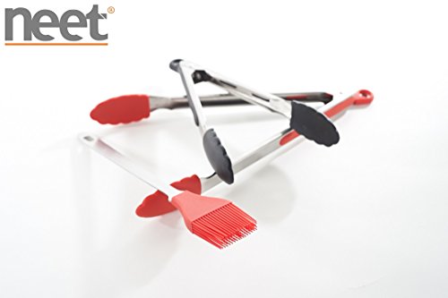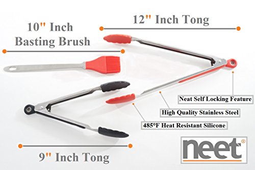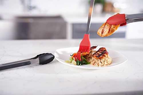 - ★ Set Includes 12"inch Red Tongs, 9"inch Black Tongs & 10"inch Red Basting Brush