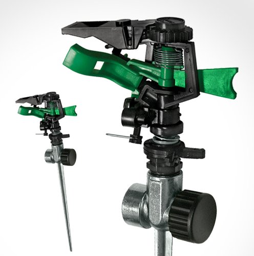 -. EAN : 0730669633096 -. Feature : Provides full uniform coverage up to 60 ft. in diameter for efficient watering / Adjustable distance dial provides an easy reach for the farthest portions of your lawn / Adjustable screw diffuses the water to stream or spray. / 2-Way hose connector for attaching multiple hoses and sP.R.Inklers to a single line / The degree of rotation is fully adjustable -. Label : WholesalePlumbing -. Manufacturer : WholesalePlumbing -. ProductGroup : Lawn & Patio -. ProductTypeName : OUTDOOR_LIVING -. Publisher : WholesalePlumbing -. Studio : WholesalePlumbing -. Title : 2 Way Lawn SP.R.Inkler Pulsating Sprayer w/ Metal Spike - Sprays Up To 60 Ft -. UPC : 730669633096