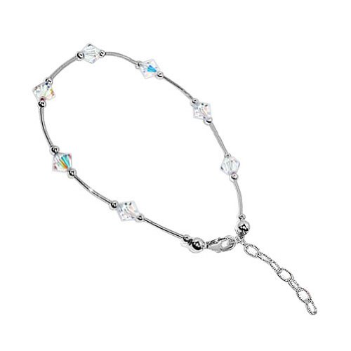 -. Title : bda013 Sterling Silver Clear Crystal Anklet 9-10 inch Anklet Made with Swarovski Elements