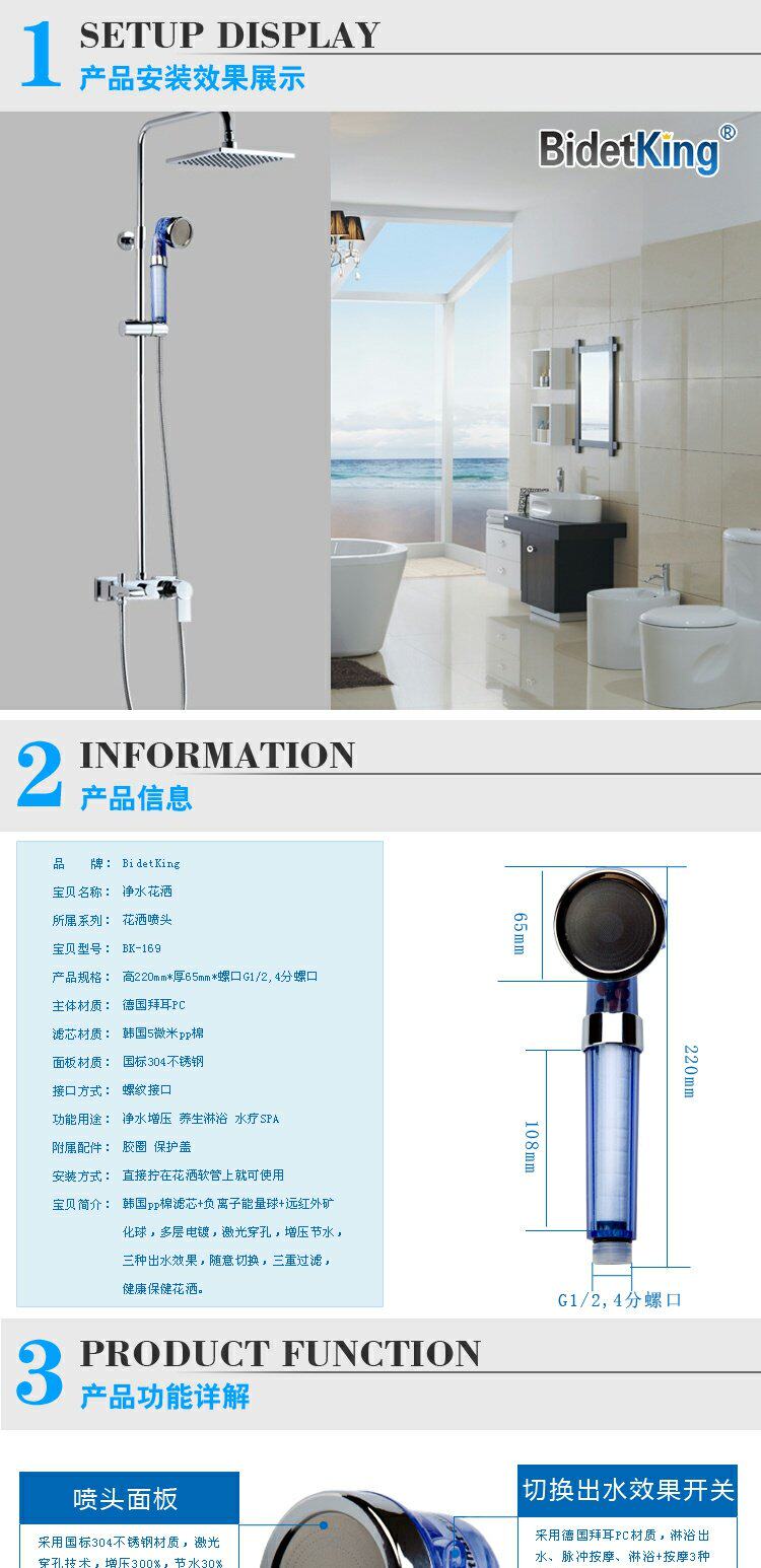 Type 1: Negative Ions Hand tempeture sensor waterhead