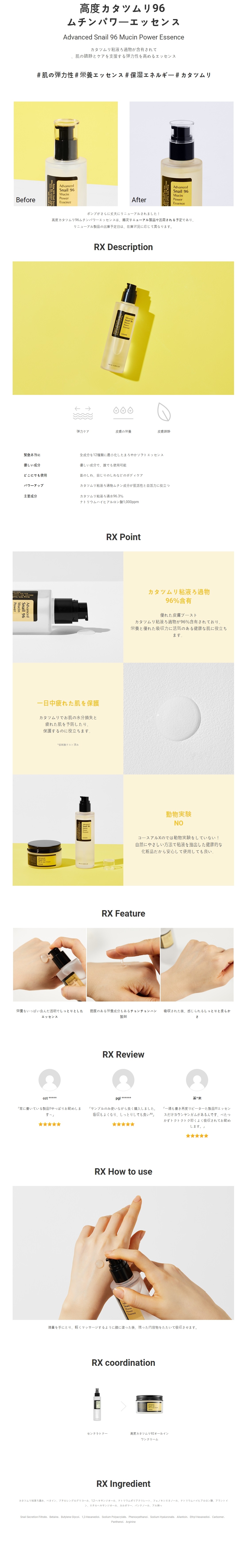 Advanced snail 96 mucin power essence is created from nutritious, low-stimulation filtered snail mucin and other great ingredients, in order to improve damaged skin.