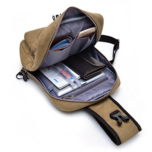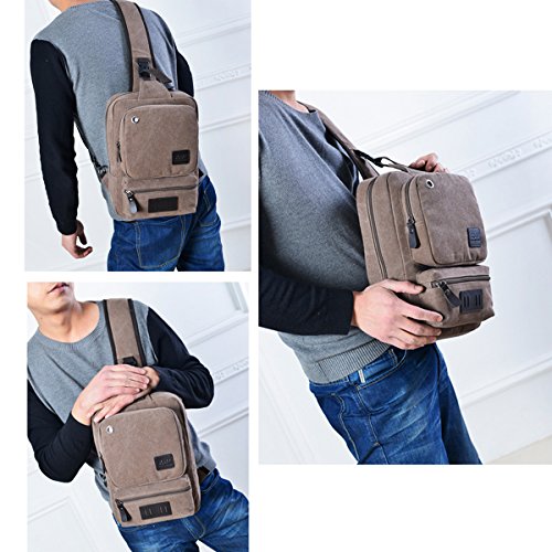 -. Title : Canvas Crossbody Sling Backpack - Vintage Chest Daypack Durable One Shoulder Messenger Bag for Men Travel Rucksack