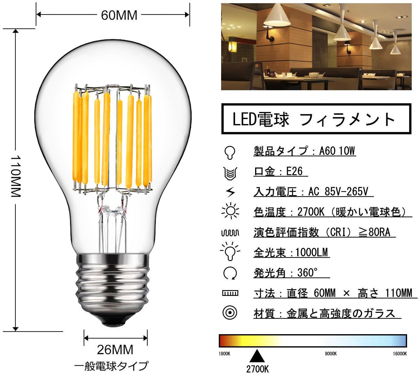- Item name: LED chandelier bulb A60 10 W filament (6 pieces)