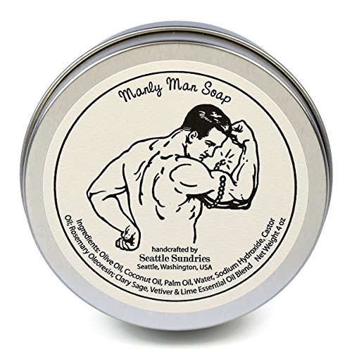 Manly Man Soap-100% Natural Skin Care Bar. Scented with Essential Oils. One 4 oz Bar in a Handy Travel Gift Tin. Great For Men, Guys, Workout, Muscle,...
