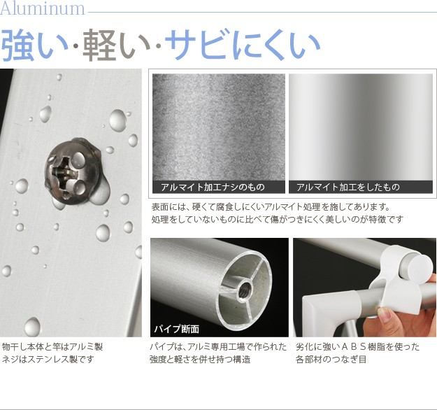 材質:本体・竿-アルミ、ジョイント-ABS樹脂、竿ジョイント-PP樹脂