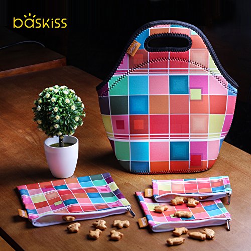 -. Title : Neoprene Lunch Bag and Reusable Sandwich & Snack Baggies by Baskiss, Machine Washable, Reusable Lunch Tote Set for Travel, Picnic, Office, School