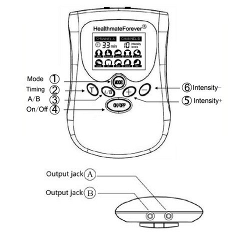 - Feature : WHAT'S IT? - HealthmateForever tens unit is the best PAIN RELIEF device by blocking the pain signal from nerves. This unit comes with belt clip, which makes it portable, you can stimulate your nerves and muscles and relax your body-anytime anywhere. / FEATURES - 10 preprogrammed massage modes: Neck, Shoulders, Wrist, Back, Elbow, Hand, Hip, Knee, Ankle, and Foot. 10-80 minute timer, you can pause with "T" button. Easy to read animated backlit LCD Display. Allows 4 pads to be used at the same time. Power by 2 AAA batteries. / FEATURES - Independent dual output design, A&B two independent outputs have independent controls, working as two machines in one. 40 levels of adjustable intensity/strength (20 per output), you can use "+" button increases intensity or "-"button decreases intensity of mode. / WHY CHOOSE US? - HealthmateForever is the #1 brand for the pain relief device, which has exceed 50 kinds of Tens Unit on Amazon; More than 10 thousand 5 stars customer reviews in all on Amazon; High quality - doctor recommended; Portable and easy to use; 100 percent drug-free; Safe and effective for home use (FDA cleared & Lifetime Warranty). / EFFECTIVE - This TENS & PMS massager provides effective results. The advanced technology sends out multiple preset electrical therapeutic waves through the electrodes. These waves stimulate the combination of deep tissue pain relief techniques and various muscle movements, relieving muscle tension; this unit is lightweight and portable, you can stimulate your nerves and muscles and relax your body-anytime anywhere; completely drug-free; the large LCD display with new featured backlight shows you at a glance exactly what you need for your targeted mode.