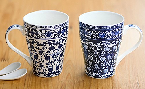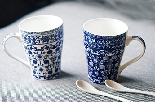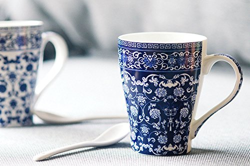 123Arts Blue And White Porcelain Coffee Mug Tea Cup - Fine Bone China Mug Gift