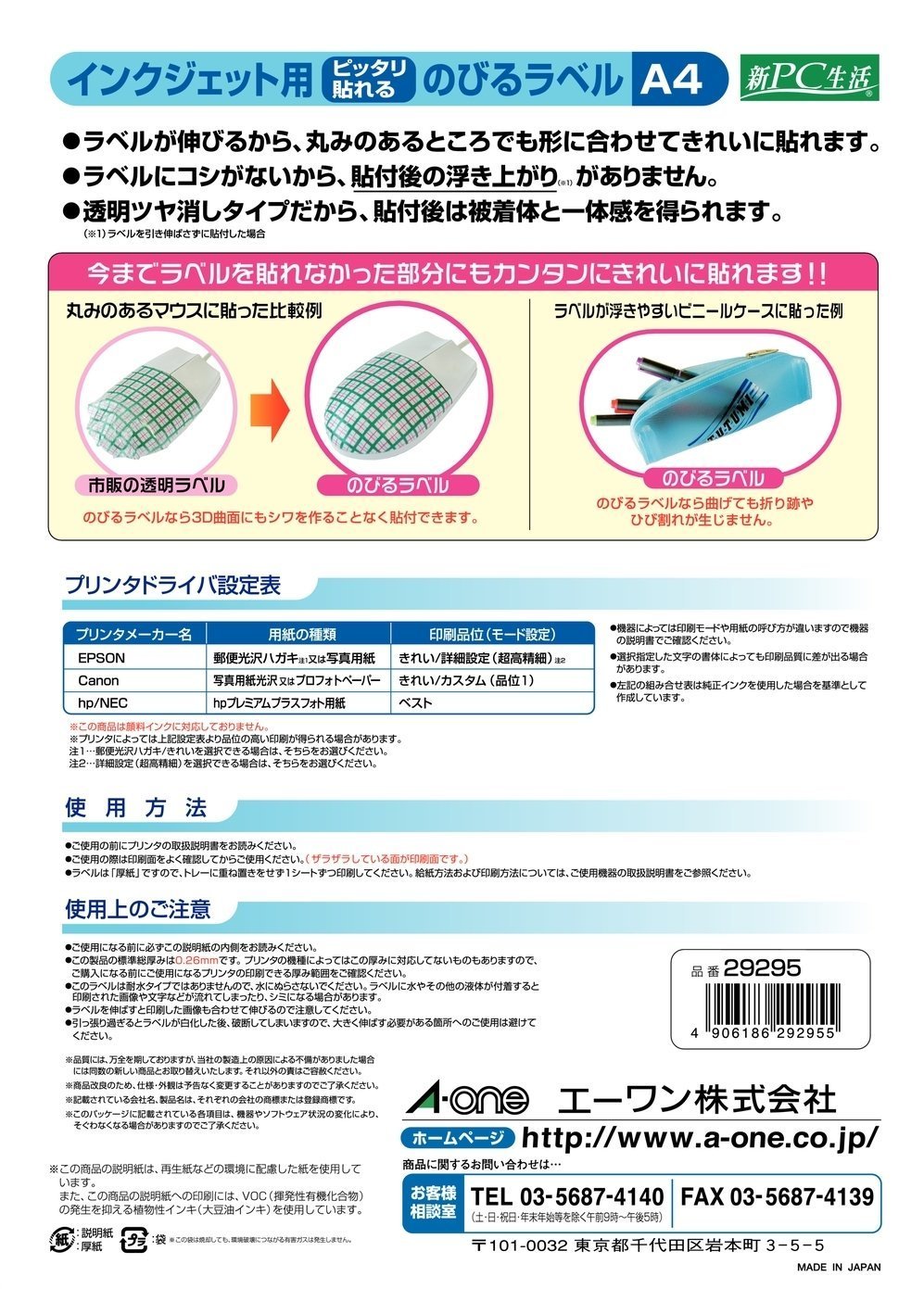 · It is a label excellent in printability with ink jet printer.