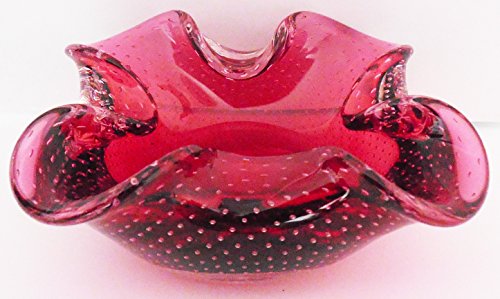-. Feature : Murano Controlled Bubble Cranberry Glass Ash Tray / 4 Spaces for smokes