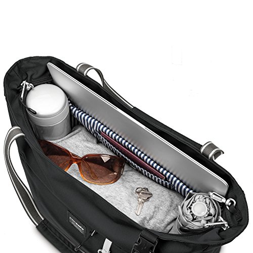 -. Feature : Simple and unstructured tote bag with anti-theft features; perfect for keeping belongings close and safe on city or travel inspired occasions / Lightweight, hidden exomesh slashguard stainless steel wire mesh embedded into fabric helps protect against slash-and-run theft / RFID safe blocking material built into a pocket helps protect ID's and credit cards from hacker scanning / On the end of the wire-embedded Dyneema strap the bag can be secured to a fixture with the dual release buckle to help prevent cut-and-run theft / Dimensions- (H x W x D): 11.9 x 15.8 x 4 in / 30 x 40 x10 cm / handle drop height: 25cm / 9.9in