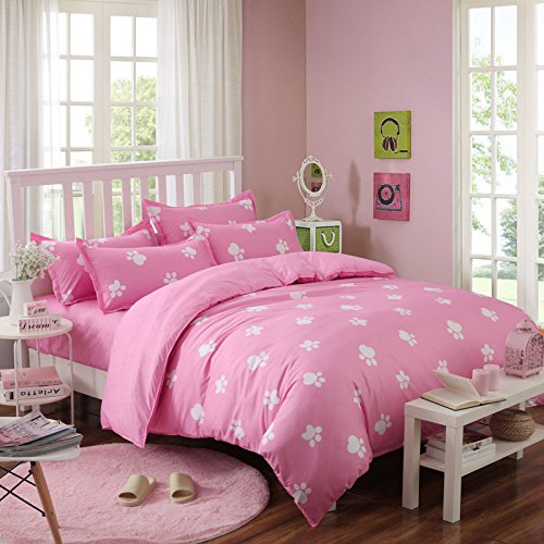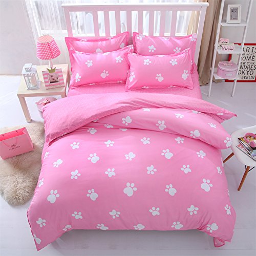 Bedding Duvet Cover Set 3-pieces Twin Size Microfiber, White and Pink Dog claws footprint Prints Animal Floral Patterns Design,Without Comforter (Twin, (1Duvet Cover+2Pillowcases)#02)