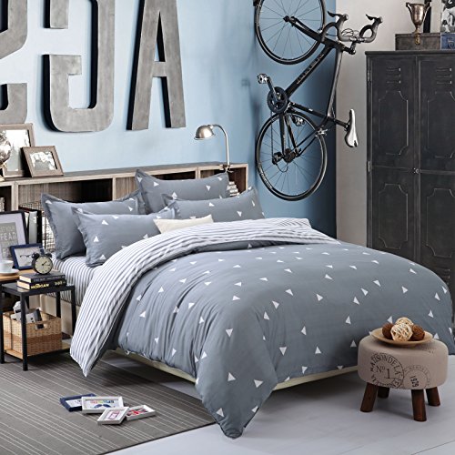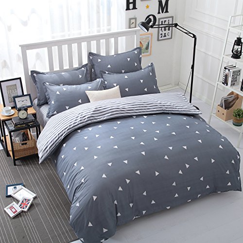 Bedding Duvet Cover Set 3-pieces Twin Size Microfiber , White and Grey Triangle Stripes Prints Floral Patterns Design ,Without Comforter (Twin, (1Duvet Cover+2Pillowcases)#03)