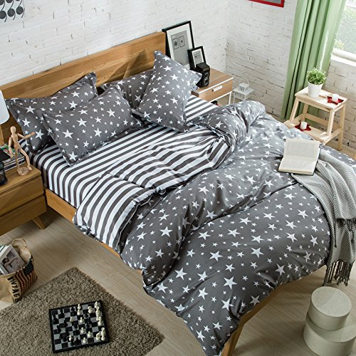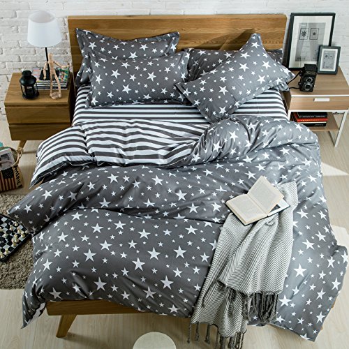 Bedding Duvet Cover Set 3-pieces Twin Size Microfiber, White And Grey Stars Stripes Prints Floral Patterns Design,Without Comforter (Twin, (1Duvet Cover+2Pillowcases)#05)