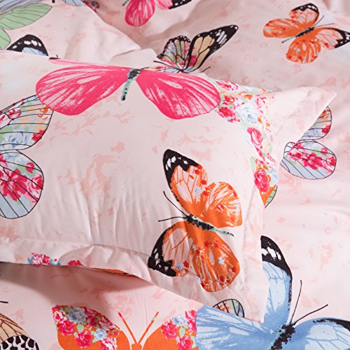 Bedding Duvet Cover Set 3-pieces Twin Size Microfiber, Pink Green Brown Blue Black Butterflies Prints Animal Floral Patterns Design,Without Comforter (Twin, (1Duvet Cover+2Pillowcases)#01)