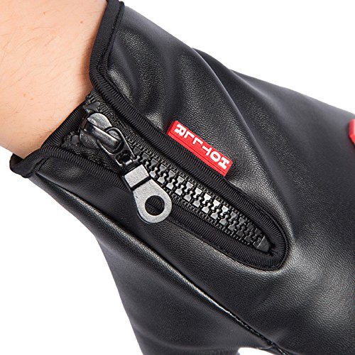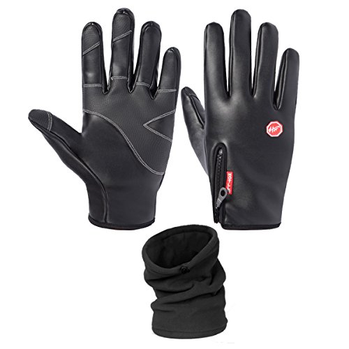 sac taske 방한 글로브 방수 방풍 사이클링 오토바이 등산 스마트폰대응 & 넥워머 (블랙 레더 XL)