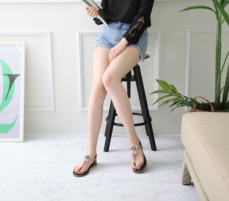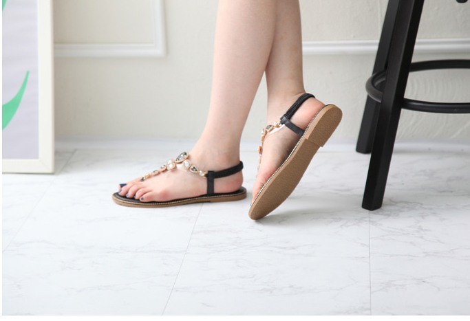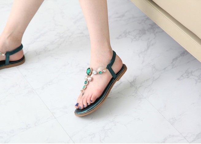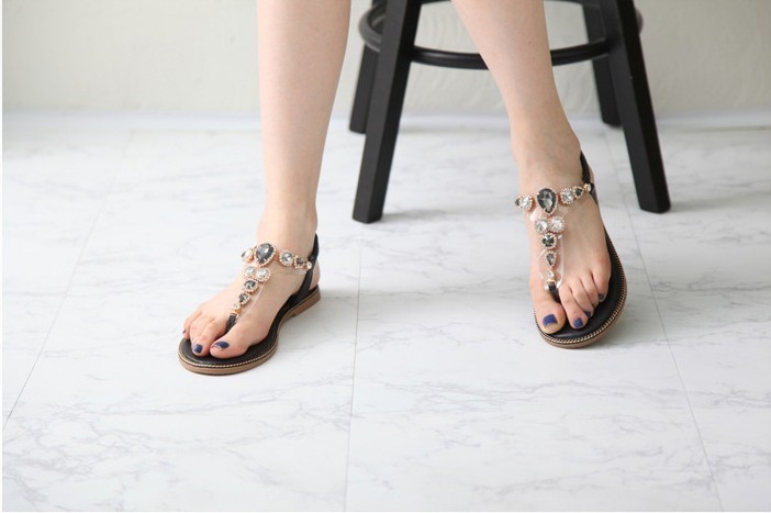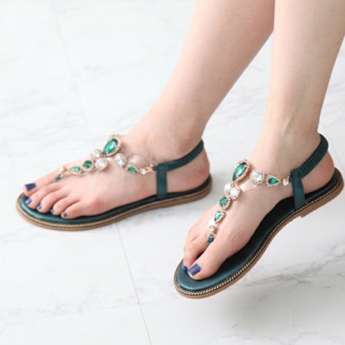 商品名:サンダル レディース ビジュー キラキラ ゴージャス ペタンコ フラットヒール 2018 春 ファッション 靴 婦人靴