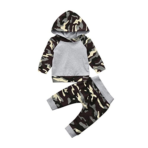 (Jujunx)/Gear/Swings, Jumpers Bouncers/DIRECT FROM USA/Jujunx Boys Clothing, 2pcs Baby Set Camouflage Hoodie Tops Pants Outfits (24Months, Gray)