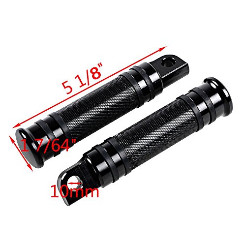 Feature: ? Slim foot peg design allows a comfortable pivot point ? Wide surface and large diameter end cap keep your boot in place ? Narrow rubber bands and the knurled surfaces provide a strong friction ? Perfect to upgrade your motorbike. Easy Installation