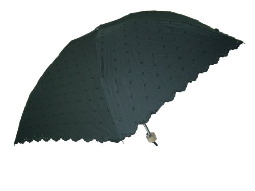 -. Title : 小花刺繍折パラソル 黒 47TCF