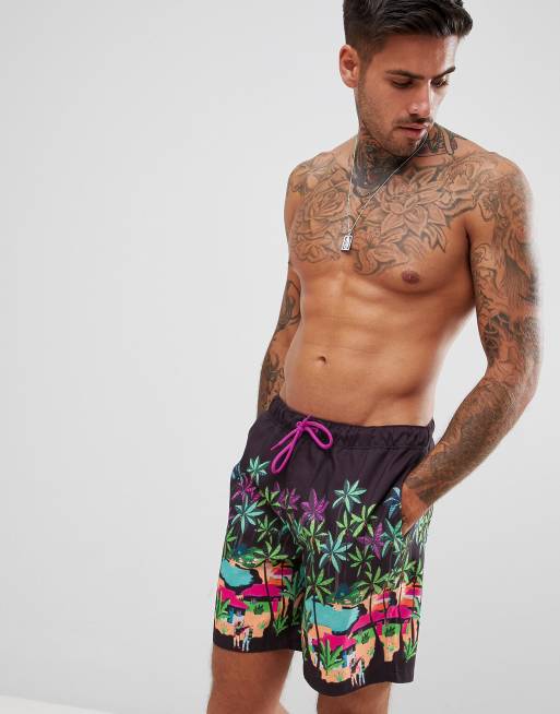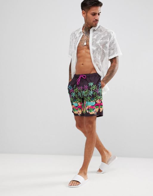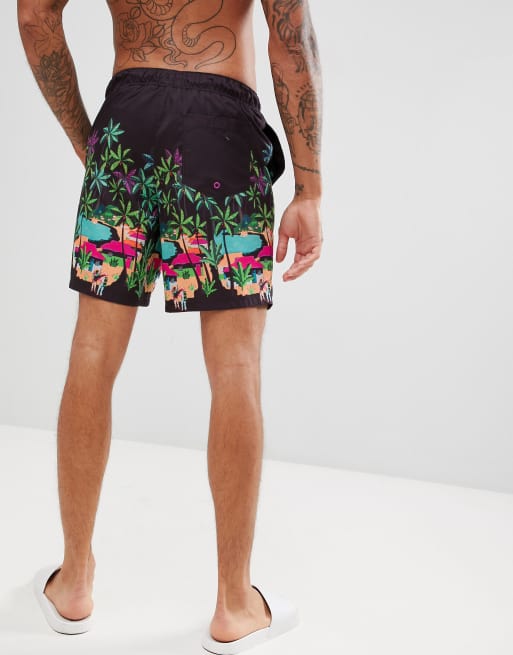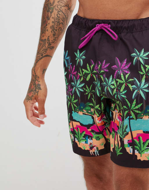ASOS DESIGN Swim Shorts With Landscape Print In Mid Length