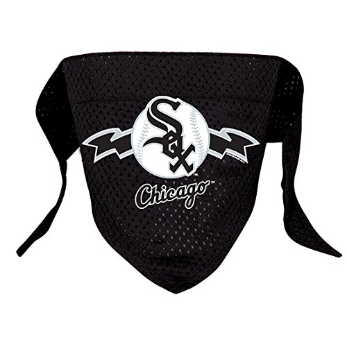 -. Binding : Misc. -. Brand : Hunter -. Color : Team Colors -. Feature : Official team primary logo / Sewn in loop to slide over dog collar / Constructed in micro mesh polyester / Available in Small and Large sizes -. Label : Hunter -. Manufacturer : Hunter -. PackageQuantity : 1 -. ProductGroup : Pet Products -. ProductTypeName : PET_SUPPLIES -. Publisher : Hunter -. Studio : Hunter -. Title : Chicago White Sox Mesh Dog Bandana