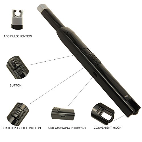 Flameless electronic Arc: the electronic Arc trigger is easy to Reach and quickly light short wicks, rechargeable comes with a USB charging cable, no gas or fluid required, a powerful electric spark over 300 times per charge