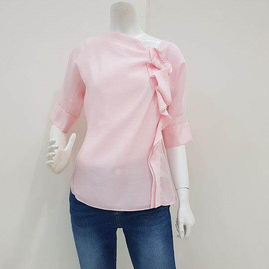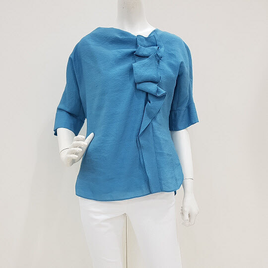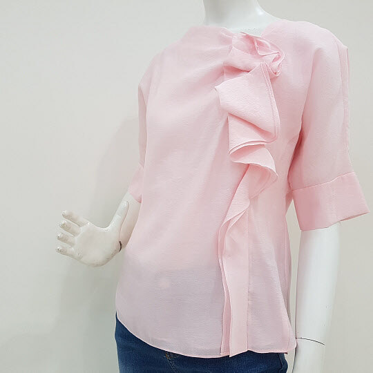 러플 셔링포인트로 페미닌한 럭셔리함이 돋보입니다 ㆍ고급스러운 소재로 파스텔톤의 사랑스러운 색체감이 표현되며 자연스러운 바디라인을 살려내어 코디만점인 블라우스입니다ㆍ