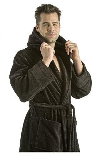 byLora Hooded Men Robe For Men Women, Terry Cotton Bathrobe, BLACK, ONE SIZE