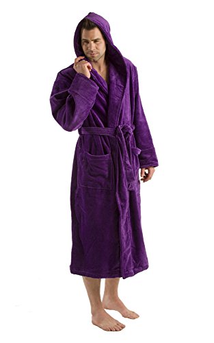 byLora Hooded Adult Robe For Men Women, Terry Cotton Bathrobe, PURPLE, ONE SIZE