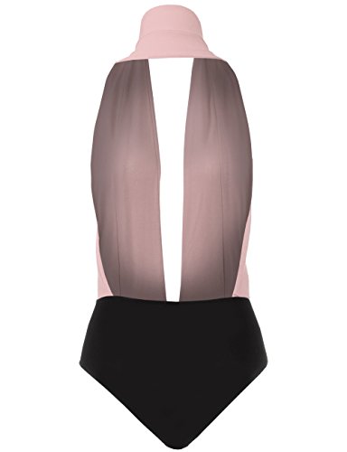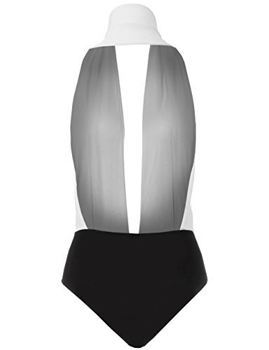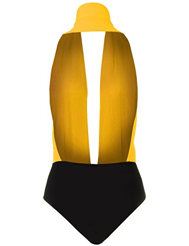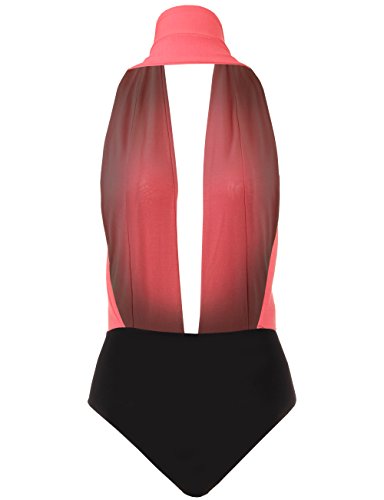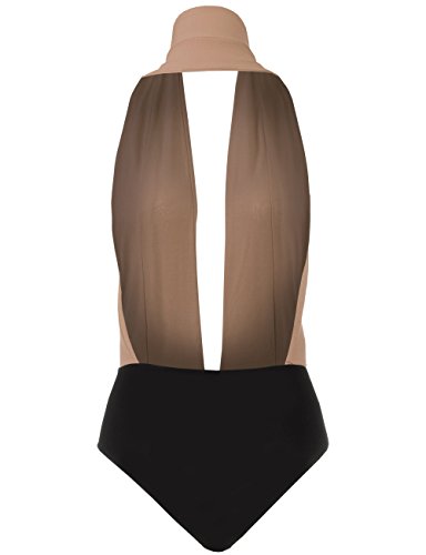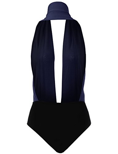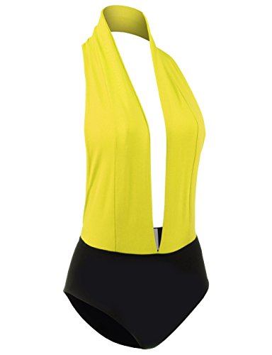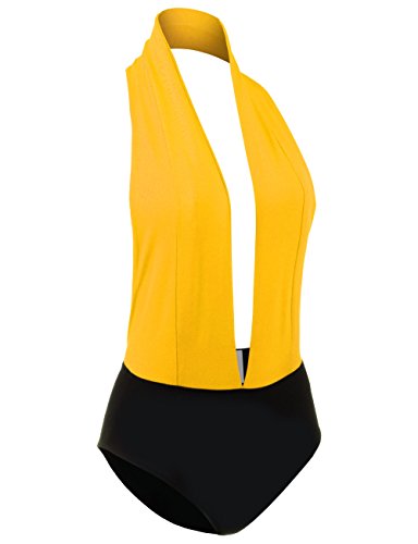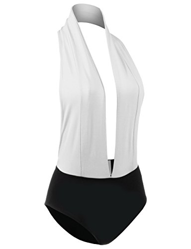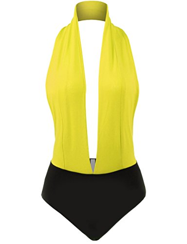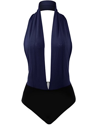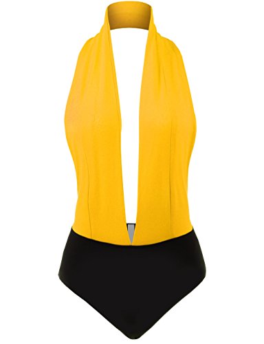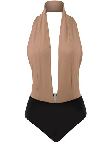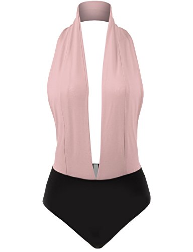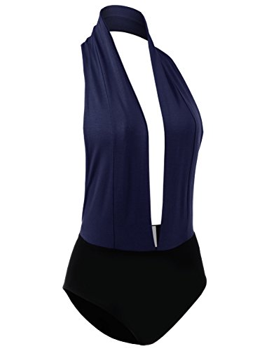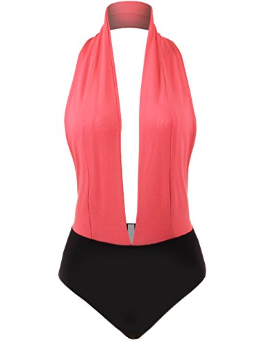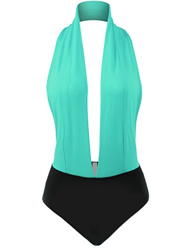 | DOUBLDO Womens Halter Plunge Deep V Neck Sexy OpenBack Bodycon Bodysuit Leotard |