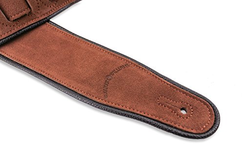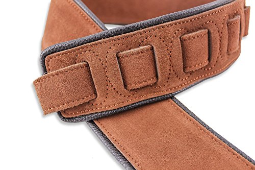 -. Feature : Premium Quality Suede Leather Strap For Guitar or Bass / Cappuccino Brown Seamless Top & Back Welts / Black Glove Leather Piping / Double Reinforced End Caps / 3" Wide and Adjustable From 47"-52"