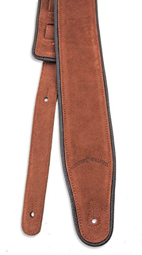 -. Title : Walker & Williams LS-516 Cappuccino Brown Premium Suede Guitar Strap with Black Piping